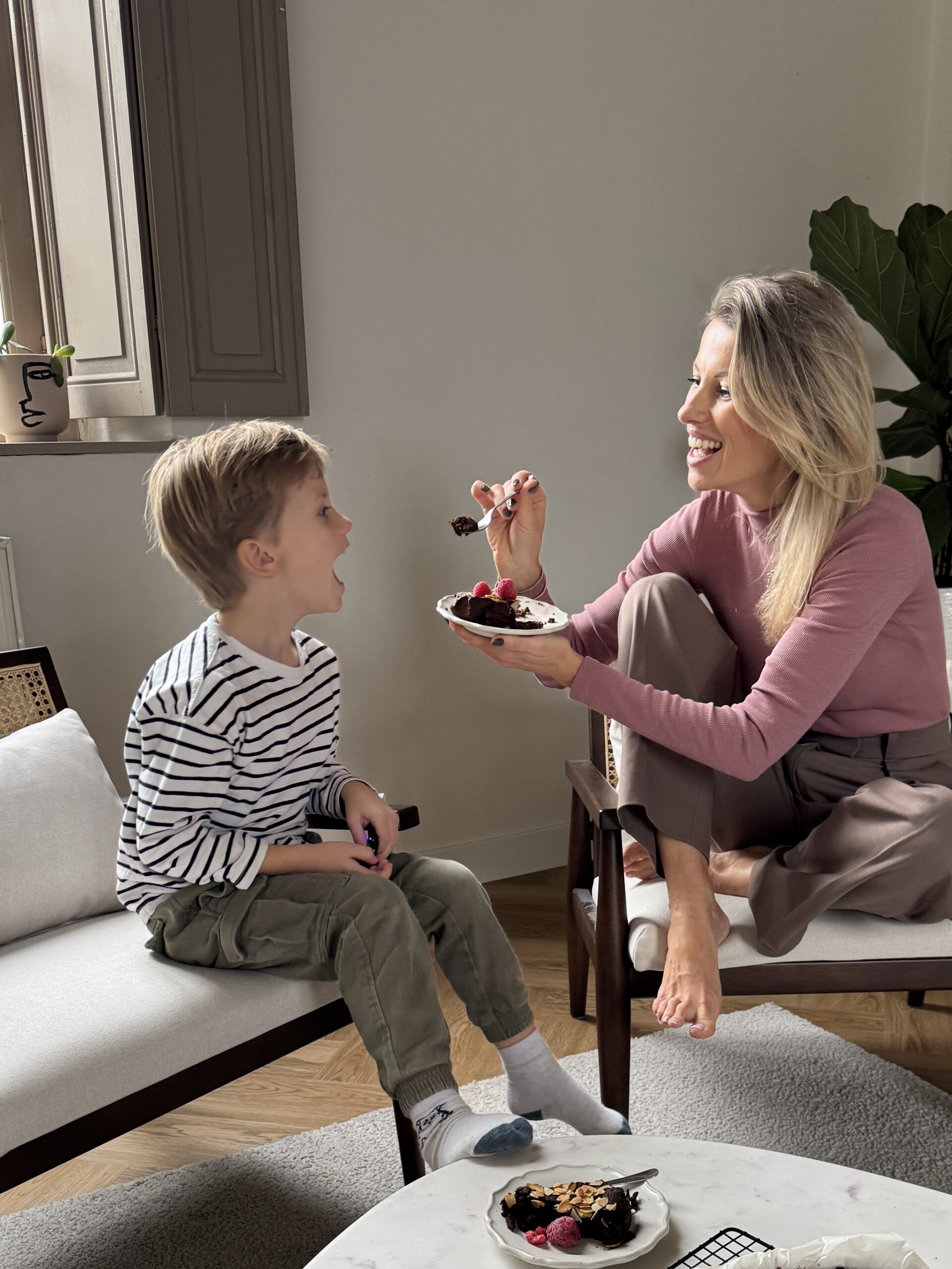 Using 70% -80% dark chocolate adds not just flavour, but naturally occurring polyphenols. Olive oil replaces butter, providing beneficial fats, while ground almonds contribute protein and fibre, helping to slow sugar absorption and support digestive balance. The recipe is gluten-free, making it suitable for those with a more sensitive gut, and the sugar content is kept intentionally low.